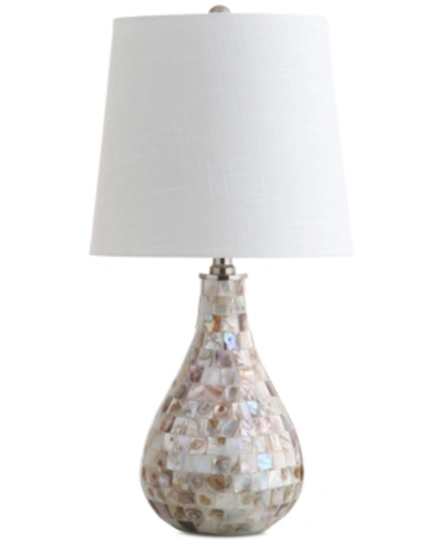 Color/Finish: Seashell Design Details: The Refined Teardrop Shape Of This Seashell-Embellished Table Lamp Creates A Modern Take On This Coastal Classic. With A Mosaic Made From The Pearlescent Interiors Of Collected Seashells, The Mother-Of-Pearl Type Finish On This Gorgeous Base Simultaneously Emotes Seaside Glamour And Luxe Living. If Your Room Needs A Touch Of Refinement And The Warm Glow Of A Perfectly Scaled 20.5 Table Lamp Then You Cannot Go Wrong With This Beautiful Piece. ; Seashell-Embellishment On The Base Creates A Luxe Look On An Otherwise Modern Shape ; Classic White Drum Shade In A Hardback Cotton Material ; Clear 60 Cord With Standard Usa 2-Prong Plug ; On-Off Switch On Socket ; Takes One Maximum 40 Watt Or Equivalent Bulb ; Eco-Friendly 4W Led Bulb Included ; Ul Listed; Body Material: Resin /Seashell ; Base Material: Na ; Shade Material: Linen Measures 10In X 10In X 20.5In Plug-In Ul Approved Imported