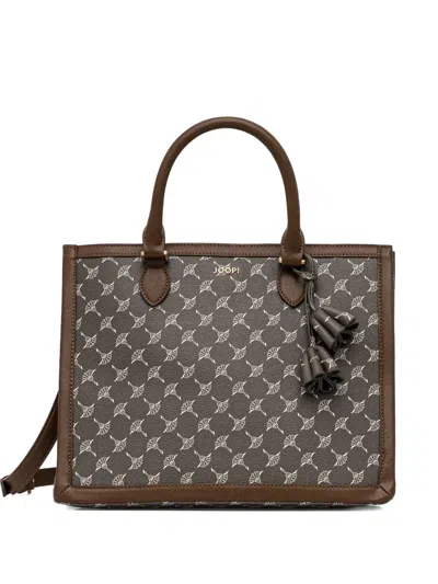 dark brown monogram pattern top handle detachable shoulder strap tassel detail top zip fastening