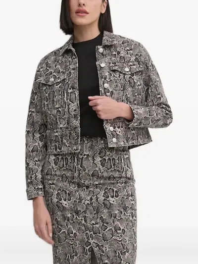 grey snakeskin print long sleeves front button fastening side flap pockets cropped