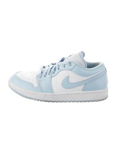 Jordan Leather Low Top Sneakers Blue & White Colorblock Pattern Round-Toes Lace-Up Closure at Uppers Unfortunately, due to restrictions, this item may not be eligible for shipping in all areas. | Jordan Leather Colorblock Pattern Sneakers in Blue/White, Women's US 5.5 | 5.5