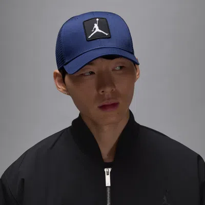 Let your head breathe as you rep the brand you love. A high-depth design gives this hat a comfortable, modern fit. Mesh panels help keep things airy while a snap-back closure gives you an adjustable fit. Product Details:Body: 100% cotton. Panels and back of front panel: 100% polyester. Do not wash. Imported. Style: FZ0774; Color: Midnight Navy/White; Size: L/XL; Gender: Unisex; Age Group: Adult | Jordan Rise Structured Hat in Blue, Size: L/XL | FZ0774-411