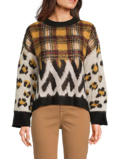 Joseph A's crewneck sweater is crafted of a soft knit showcasing geometric motifs and ribbed detailing. Crewneck Long sleeves Rib-knit trim Pulls over 100% acrylic Hand wash Imported SIZE & FIT About 23" from shoulder to hem Model measurements: 5'10 tall Model is wearing a US size Small. Womens - W Sportswear > Saks Off 5th. Joseph A. Color: Leopard Plaid Multi. Size: L.