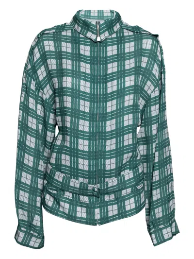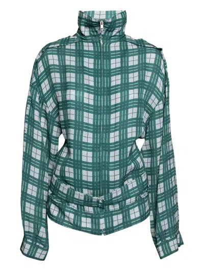 green and white check pattern high collar belted detail zip fastening long sleeves UNWORN. This item is previously owned but remains unworn and in its original condition. However, it does not come with its original tags.