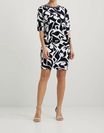 JOSEPH RIBKOFF Abstract Drawstring Top In Black & White In Multi