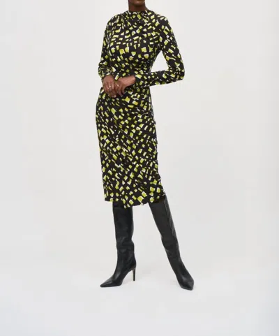 JOSEPH RIBKOFF Abstract Print Midi Sheath Dress In Black/multi In Green