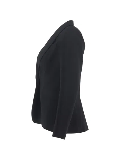 black structured collar long sleeves single-button closure flap pockets Condition: EXCELLENT. This previously owned item is in near-perfect condition with no signs of damage or use.