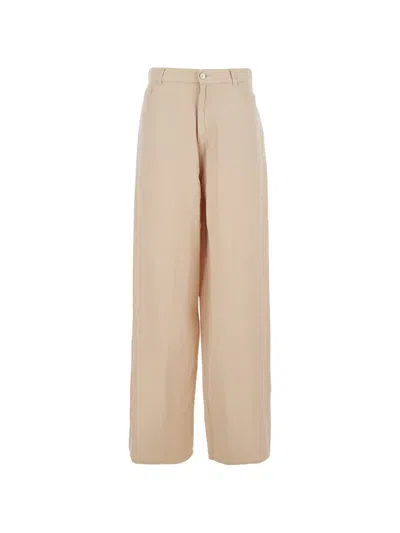 beige belt loops five pockets wide leg button closure