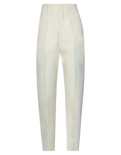 plain weave, no appliqués, solid color, high waisted, straight leg, regular fit, hook-and-eye closure, zipper closure, multipockets , Color: Ivory , Size: 2