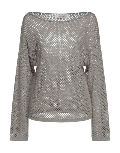 knitted, lamé, no appliqués, lightweight knit, round collar, solid color, long sleeves, no pockets , Color: Khaki , Size: L