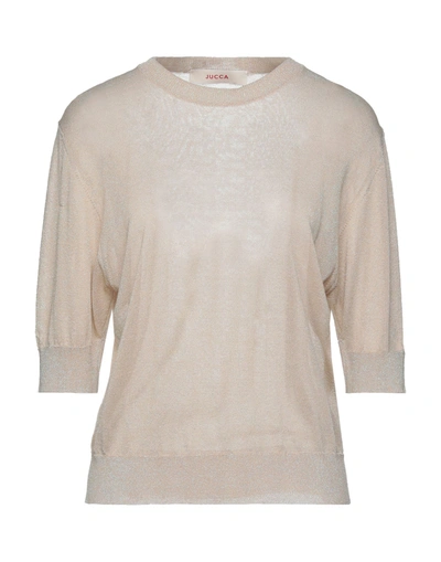 knitted, lamé, no appliqués, lightweight knit, round collar, solid color, short sleeves, no pockets , Color: Beige , Size: S