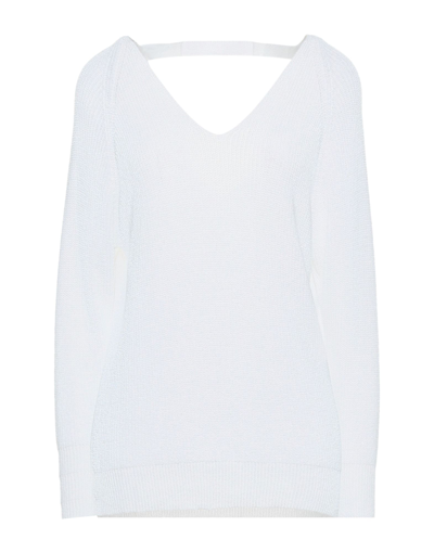 knitted, lamé, no appliqués, lightweight knit, v-neck, solid color, long sleeves, no pockets , Color: White , Size: M