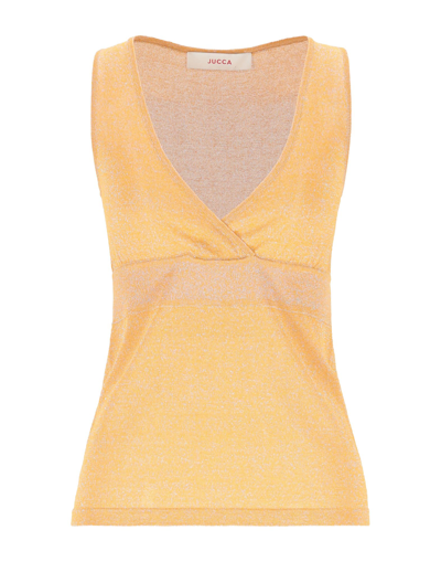 knitted, lamé, lightweight knit, two-tone, sleeveless, no pockets, deep neckline, no appliqués , Color: Ocher , Size: L