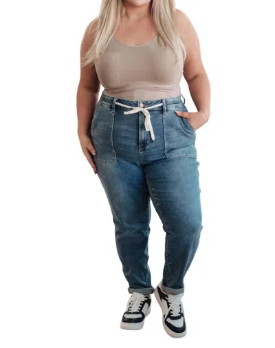 JUDY BLUE Pull On Denim Joggers In Medium Wash In Multi
