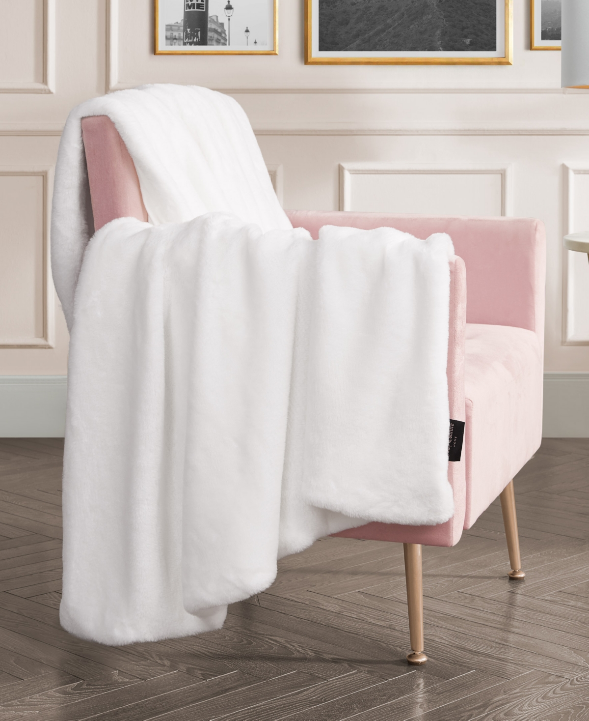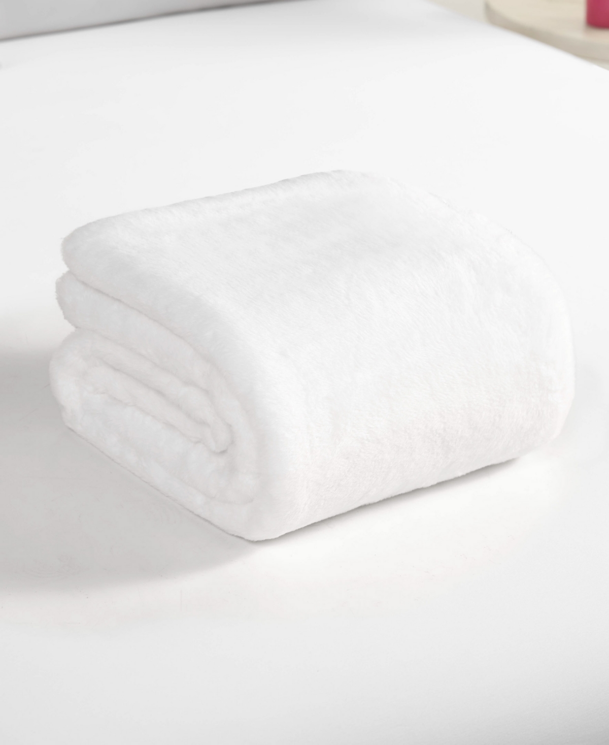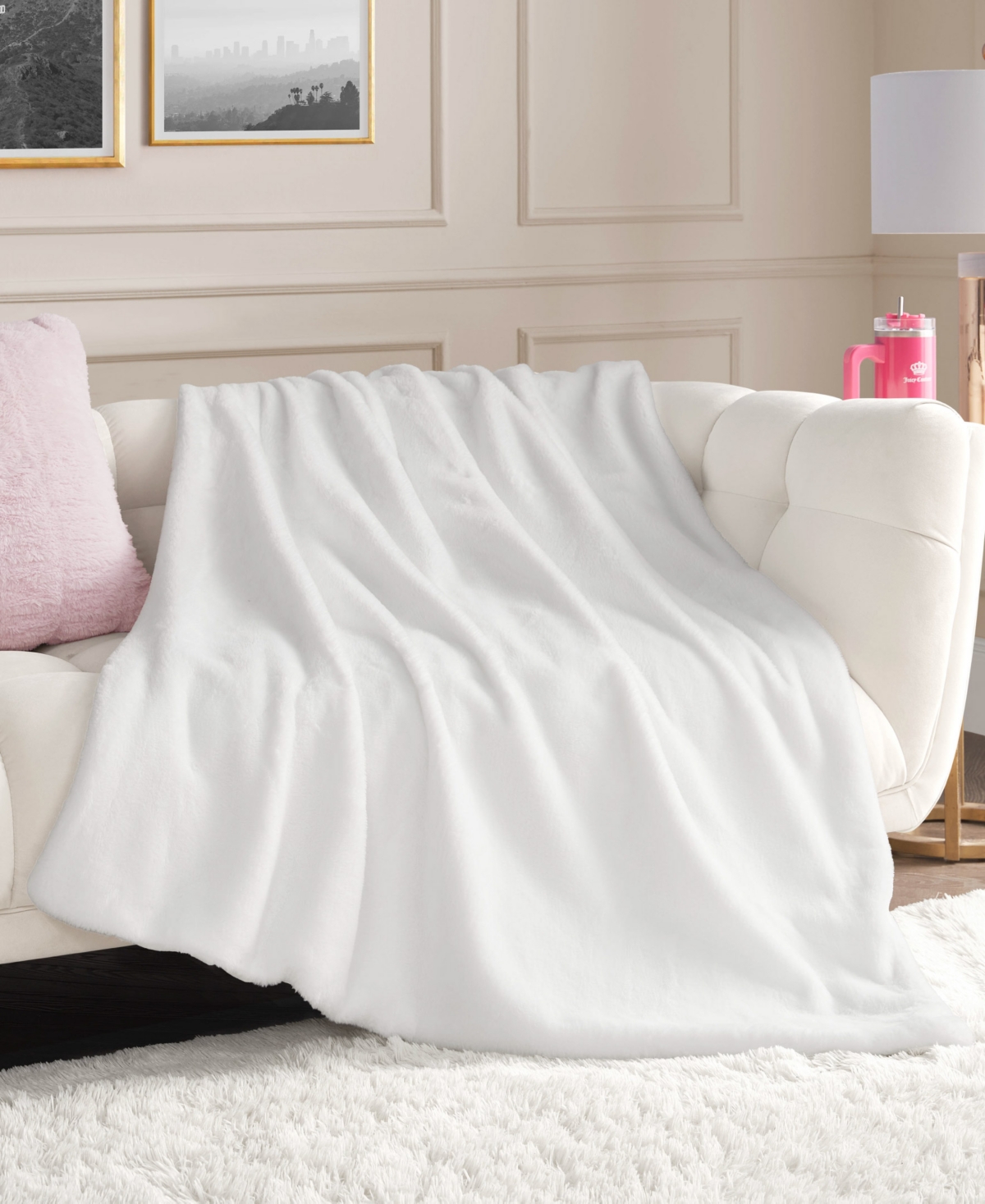 JUICY COUTURE Rabbit Mink Faux Fur Throw Blanket, 50" X 70" In White