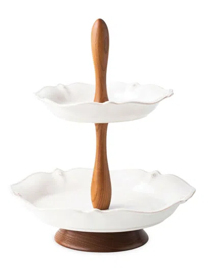 From the Berry & Thread Collection. Rimmed with a simple thread and adorned with a sprinkling of berries, Juliska's iconic dinnerware collection embraces the historic motifs of Bohemian glassware. This tiered serving stand features an ash wood handle and foot, with two ceramic rimmed trays with subtle scallop detail. The wood elements easily unscrew and separate from the ceramic trays for dishwashing. Stoneware ceramic, oak Ceramic plate: microwave- and oven-safe Ceramic plate: dishwasher-safe Wooden base and rods: wipe with damp cloth Made in Portugal SPECIFICATIONS 11.5"L x 11.5"W x 14"H. Gifts - Serveware > Juliska > Saks Fifth Avenue > Barneys. Juliska.