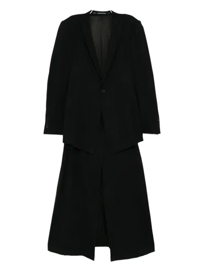 black front button fastening two side welt pockets buttoned-cuff sleeves detachable skirt