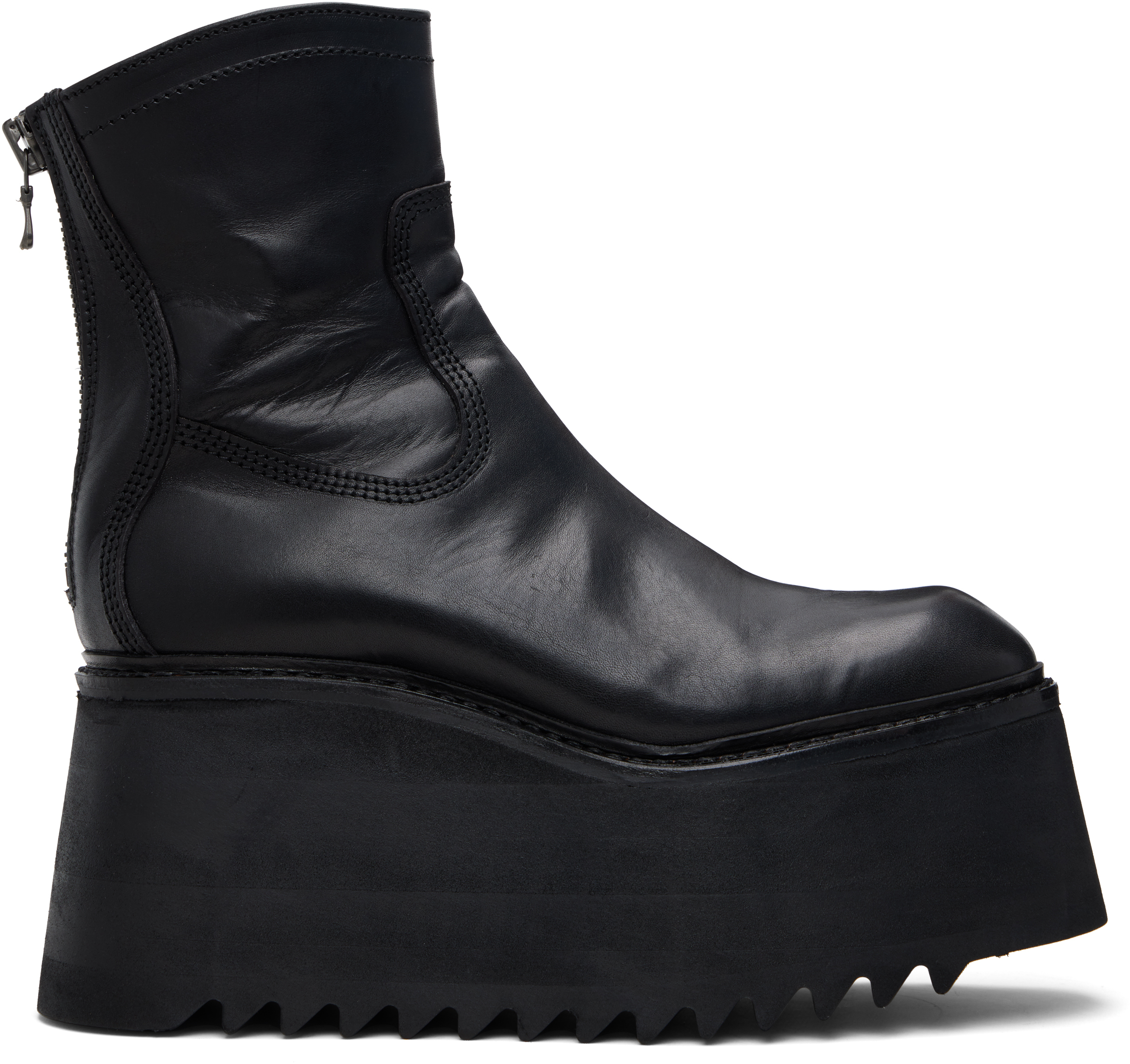Ankle-high grained leather boots. · Zip closure at heel · Foam rubber platform midsole · Treaded Vibram® rubber sole · Platform: H4 Supplier color: Black