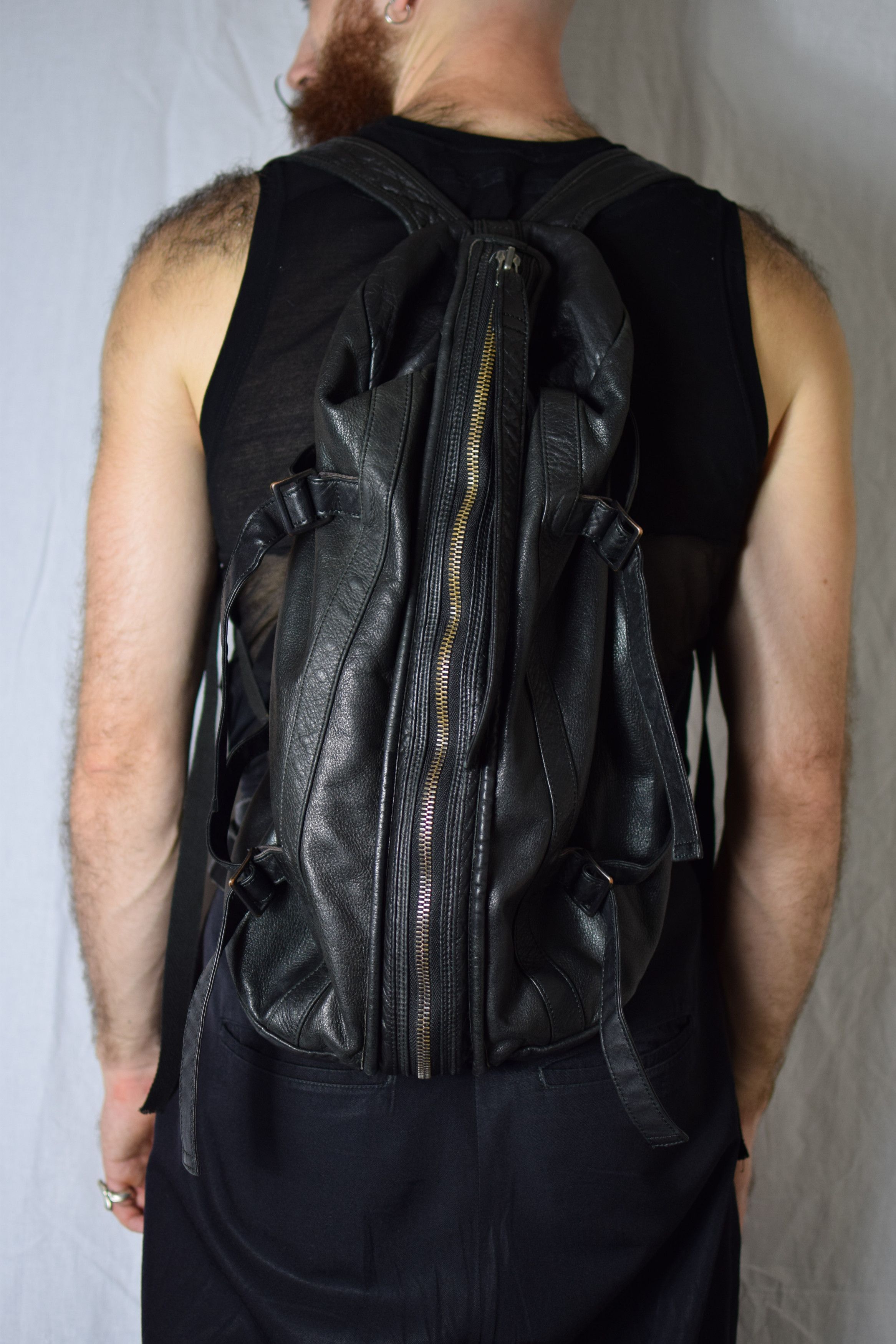 Julius Backpack. In Excellent Condition, No Flaws Or Damages To Note. Condition: 9/10 A Archive Piece From Julius, Around The 2004-2006 Mark, This Backpack Features A Chunky Zipper Down The Middle, And Adjustable Straps At The Sides As Well As The Main Ones. Features Also An Internal Compartment With Zipper. Offers And Trades Welcome, Interested In Brands Like Yohji Yamamoto, Comme Des Garçons, Julius, Song For The Mute, Rick Owens, Ccp, Guidi, Etc. For Related Content: @karasu. Clothing | Julius Leather Backpack in Black, Men's
