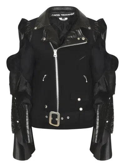 JUNYA WATANABE Ruffled Leather-sleeve Coat In Black