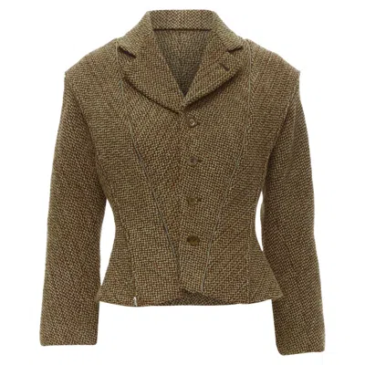 rare JUNYA WATANABE 1999 Runway brown tweed herringbone transformable jacket MReference - CRTI/A00750Brand - Junya WatanabeDesigner - Junya WatanabeCollection - 1999 - RunwayMaterial - TweedColor - BrownPattern - HerringboneClosure - ButtonLining - Black FabricExtra Details - Zipper used in seams and overall cutting is very flattering to the body. Can be zipped up and transformed into a smaller garment that can be easily carried.Made in - JapanCONDITION - Condition - Excellent, this item was pre-owned and is in excellent condition. Comes with - Style code present (Generic) SIZINGDesigner size - MSize reference - US4-6 / UK10 / IT42 / FR38 / S-MMEASUREMENTS - Shoulder to shoulder - 43cm / 16.8"Chest - 42cm / 16.4"Waist - 36cm / 14"Length - 52cm / 20.3"Sleeve length - 50.5cm / 19.7"Measurments - length - 520 mm
