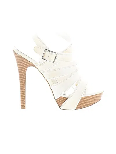 Just Fab Heels, Size: 8 1/2. Item Details: Ivory, Stripes Pattern, Strappy Sandals, Women's Shoes