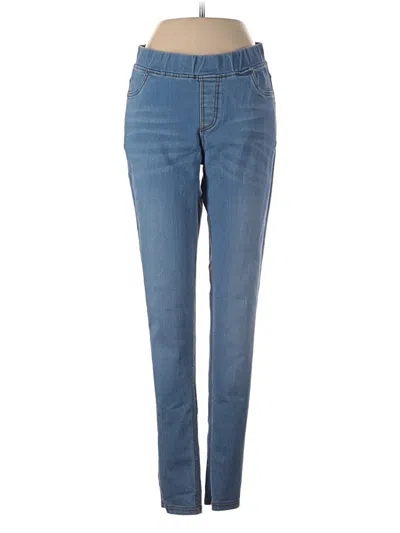 JVINI Jeans, Size: Medium. Item Details: Blue, Solid Pattern, Light Wash, Skinny Leg, Cropped, Harem, Mid/Reg Rise, Women's Bottoms, Cotton/Polyester/Spandex