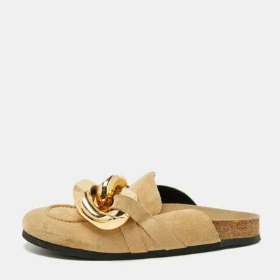 Walk stylishly in these slide sandals from J.W.Anderson. Designed using beige suede these flat slides display a chain link accent on the vamps. They are finished with gold toned hardware for a classy effect. Match them with your summer dresses for a chic style.