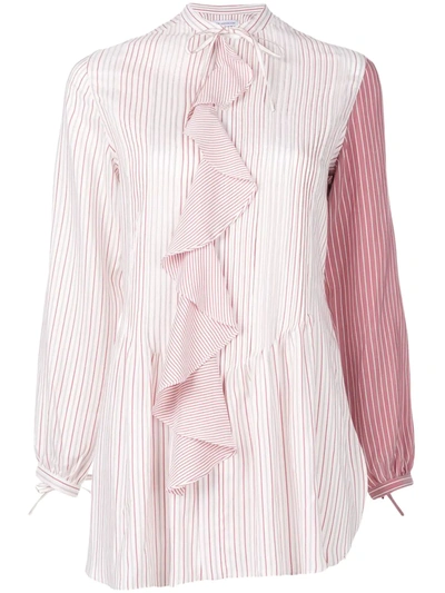 JW ANDERSON Ruffled-front Striped Silk-charmeuse Tunic Top In Ruby