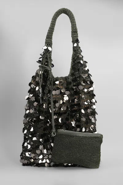 Sequin Hobo Hand Bag In Green Polyester In Black