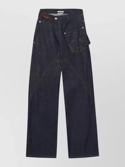 Wide leg | Contrast stitching | Decorative pocket | Belt loops | Button fastening