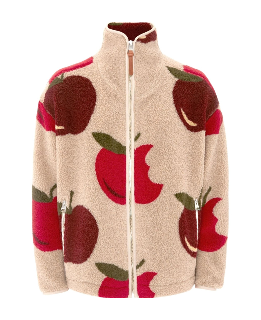 zip-fastening fleece-texture jacket from JW Anderson featuring beige, cotton, all-over graphic print, fleece texture, funnel neck, long sleeves and front zip fastening.