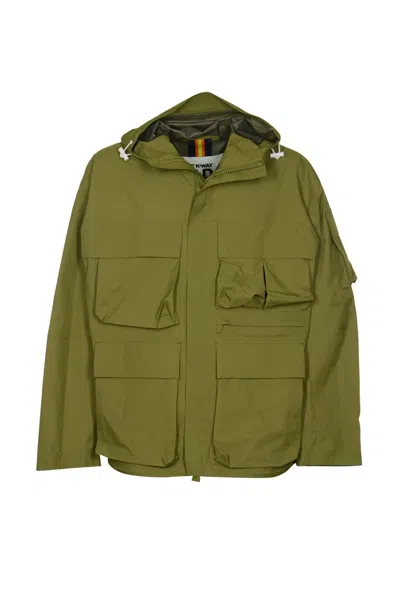 Claudel is a short jacket with a sporty and loose fit design, ideal for mid seasons. It is made from a 3-layer technical fabric that is windproof and waterproof up to 5000 water columns, providing comfort against the skin. The jacket stands out for its utility style, featuring a full zip construction with a enveloping hood, elasticized cuffs, and an adjustable lower hem with a drawstring. It includes 4 large front flap pockets, a pocket on the sleeve, and a rear pocket that allows the garment to be packed away. Amiable is the K-Way project that combines functionality and environmental respect. This garment is made from 100% recycled and recyclable nylon, finished with windproof thermosealed seams, also made from recycled materials. Features Description: Jackets, Mid Gender: Unisex Season: Spring, Summer Composition Entire: 49% Nylon, 21% Polyester, 30% Poliuretane