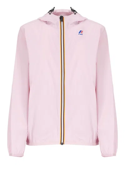 - Pink K-Way waterproof fabric jacket for woman - Hood - Front zip fastening - Long sleeves - Two front zip pockets - Front contrasting color logoModel's height is 179 cm and she wears a size S