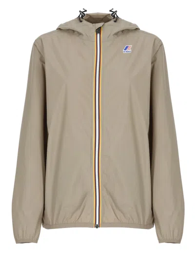 - Dove grey K-Way waterproof fabric jacket for woman - Hood - Front zip fastening - Long sleeves - Two front zip pockets - Front contrasting color logoModel's height is 179 cm and she wears a size S