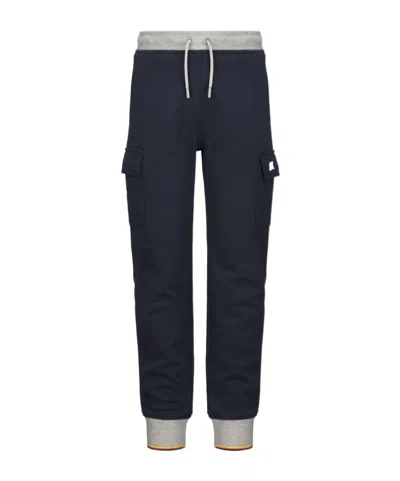 Drawcord design, two side patch pockets, one back patch pocket, two patch work pockets with side logo patches, and contrasting ribbed hem.