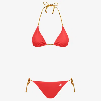 The Etre bikini flaunts an ultra-feminine silhouette, updated with signature K-Way details. Made from quick-dry Lycra®, both the triangle top and brief bottoms fasten with woven ties in our iconic colours. - Made from Lycra® - Lined - Braided straps - Regular fit - Printed logo Features Description: Bathing Suits, Bikini Gender: Woman Season: Spring, Summer Composition External: 22% Elastane, 78% Recycled Polyamide Lining: 100% Polyester