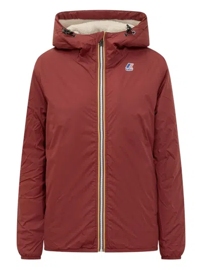 K-WAY Hooded Jacket With Sherpa Interior In Red