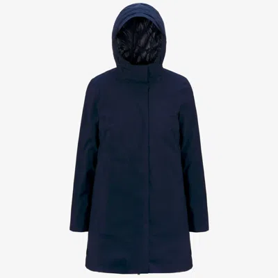 The Mathiel is a women's three-quarter jacket, perfect for winter, which blends everyday looks with an urban style and clean lines thanks to its logo-free front. This jacket features a cozy fit with a zip closure and an adjustable enveloping hood. It has a three-layer technical fabric shell with an outer nylon layer, a middle membrane, and a fleece interior with contrast color heat-taped seams. The warm floating padding and comfortable internal quilting ensure optimal protection against the coldest temperatures. The model includes welt pockets and the K-Way tape detail on the cuff. - Three-layer stretch fabric, water-repellent, windproof - Floating padding - High warmth level - Zip closure - Hidden button pockets - Adjustable hood - Heat-taped seams - Regular fit - Logo at the cuff Features Description: Jackets, 3/4 LENGTH Gender: Woman Season: Fall, Winter Composition Lining: 100% Polyester Padding: 100% Polyester