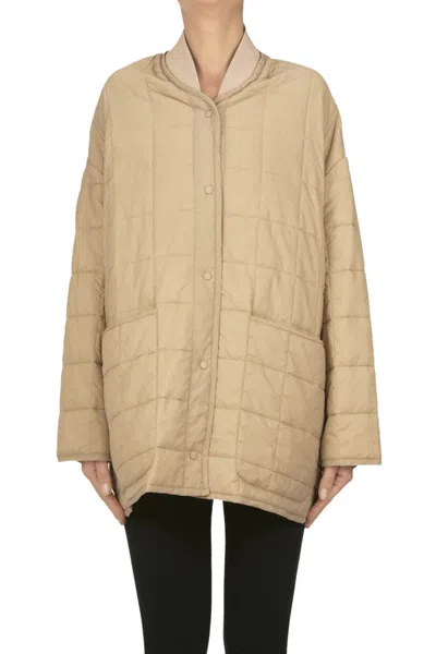 Quilted jacket, wide, snap-fastenings at front, ribbed knit collar. Sample size: 38/40 COMPOSITION: 100% Nylon Made in China