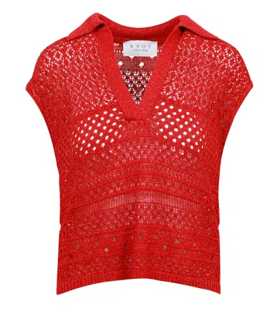 - Cotton and lurex - Polo neck with v-neck scallop on the front - Sleeves announced on the shoulders - Hem with ribbed edge and piping - Regular fit