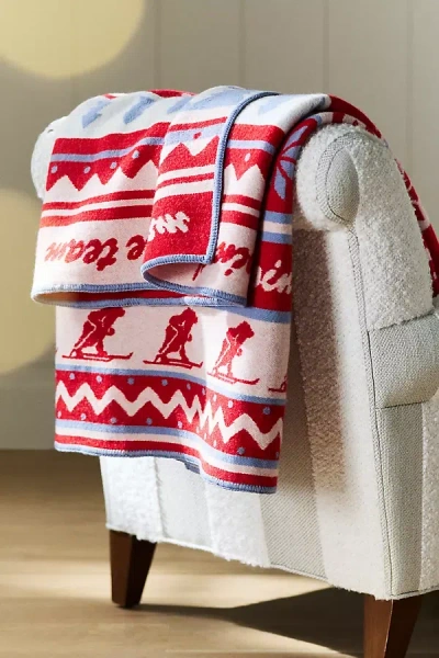This vibrant, graphic blanket is ideal for snuggling up any time of year. Patterned Wool Throw Blanket by Karhu in Red, Size: 50 x 70, Cotton/Wool at Anthropologie