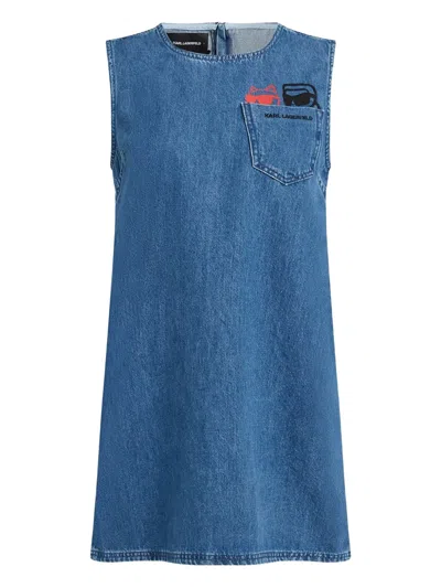 KARL LAGERFELD Ikon Duo Sketch Denim Dress In Blue