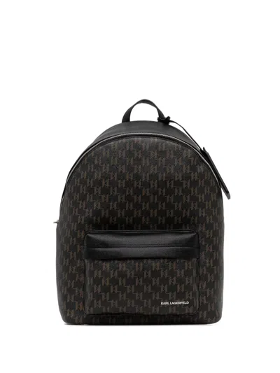 KARL LAGERFELD Monogram-pattern Zip Backpack In Black