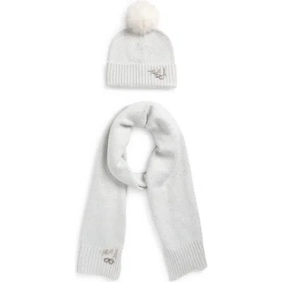 KARL LAGERFELD Paris Shimmer Pompom Beanie & Scarf Set In White
