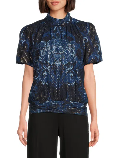KARL LAGERFELD Women's Printed Mock Turtleneck Top In Blue