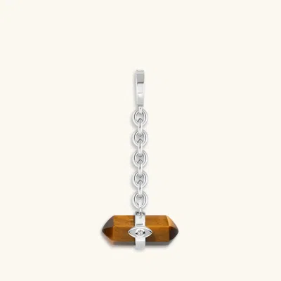 KARMA AND LUCK Fearless Intuition - Tiger's Eye Double Pointer Charm In Silver