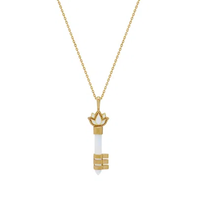 KARMA AND LUCK Women's Gold / White Spiritual Awakening Rainbow Moonstone Key & Lotus Gold Necklace In Multi