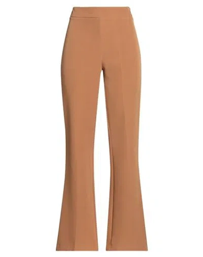 Woman Pants Camel Size 10 Polyester, Elastane In Brown