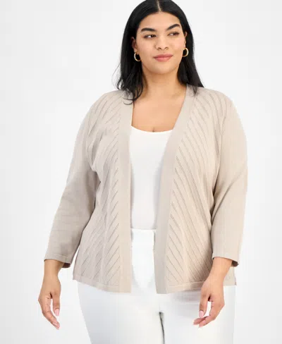 KASPER Plus Size Diagonal Stitch Open-front Cardigan In Summer Straw
