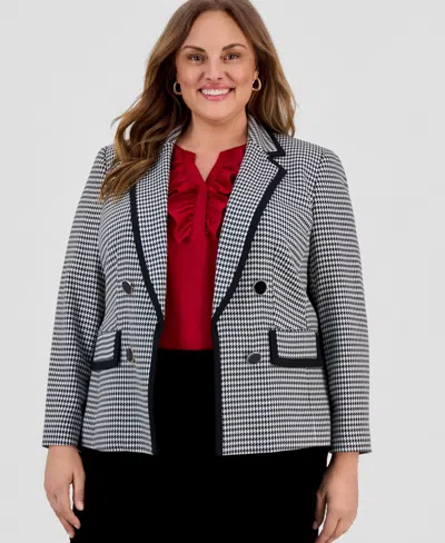KASPER Plus Size Open Front Houndstooth Blazer In Black